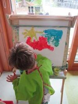 Danach: Freispiel: Spielen und Lernen in den Gruppenräumen, Garten, Bewegungsbaustelle, Rutsche und Parcour, gezielte Angebote.
